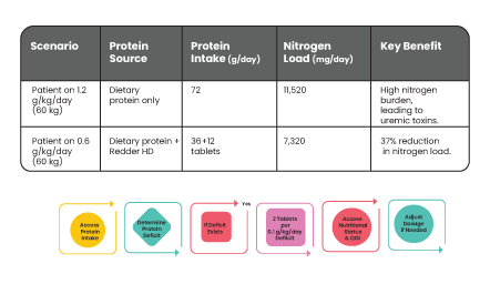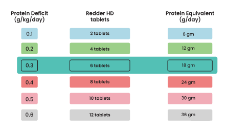 Each Redder HD tablet provides 1250 mg of optimized essential amino acids, tailored to address protein-energy wasting in dialysis.